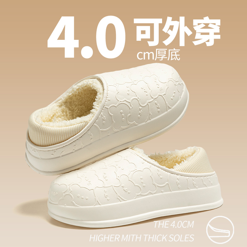 朴西棉拖鞋女冬加绒加厚底保暖防滑室内家居包头情侣棉拖男毛毛鞋