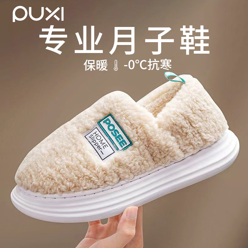 朴西厚底包跟棉拖鞋女秋冬季保暖防滑月子鞋室内家居家用毛绒棉鞋