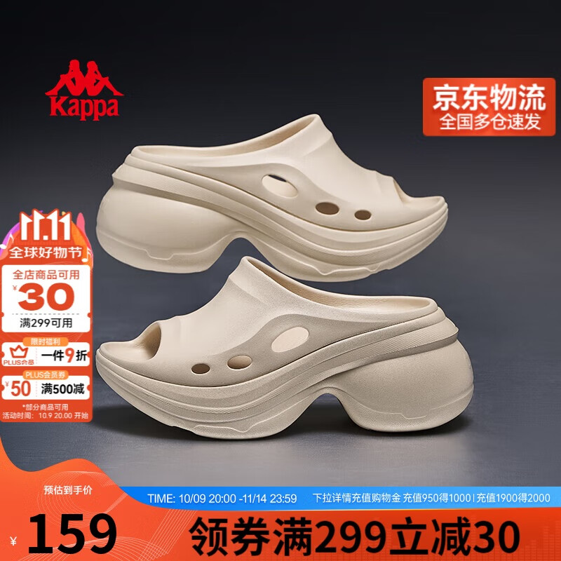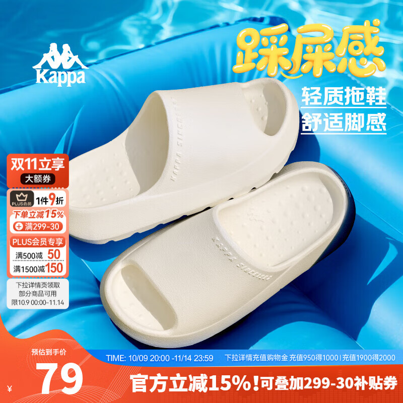 KAPPA卡帕拖鞋男2025秋季新款运动拖鞋防滑沙滩鞋男款厚底时尚凉拖鞋子 冬日白 41-42