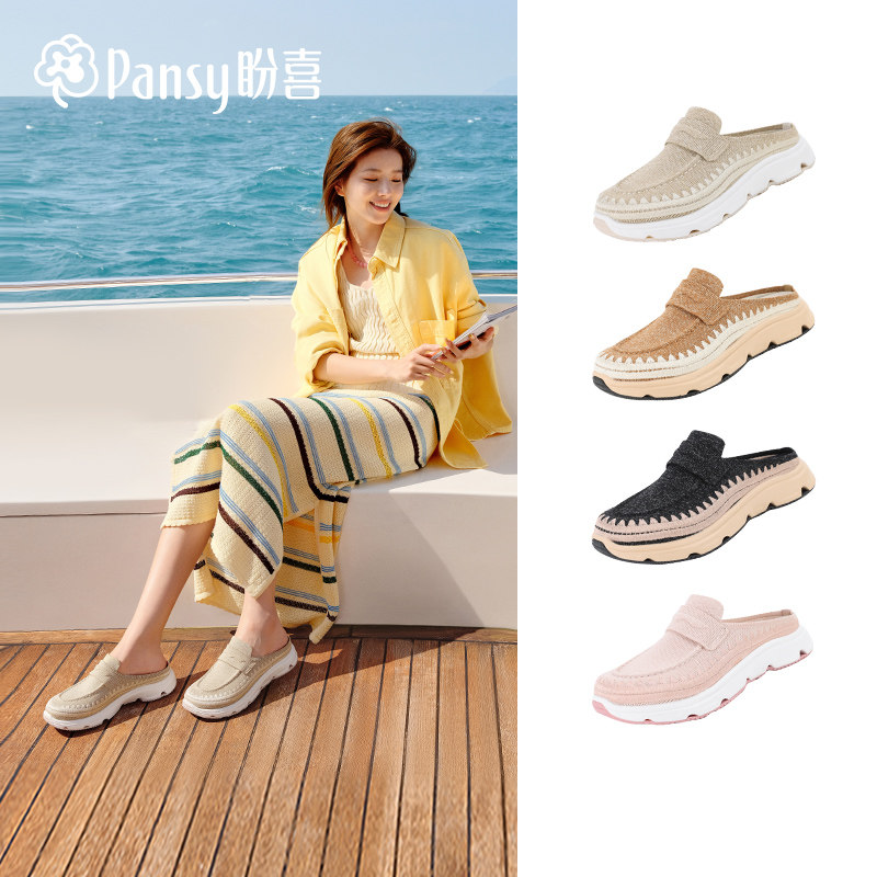 Pansy盼喜26春夏懒人宽楦一脚蹬女厚底包头拖透气半包舒适拖鞋