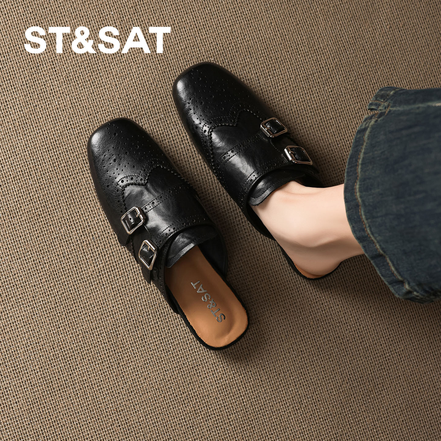 星期六黑色包头拖鞋女2026春季新款双排扣外穿防滑一脚蹬复古百搭