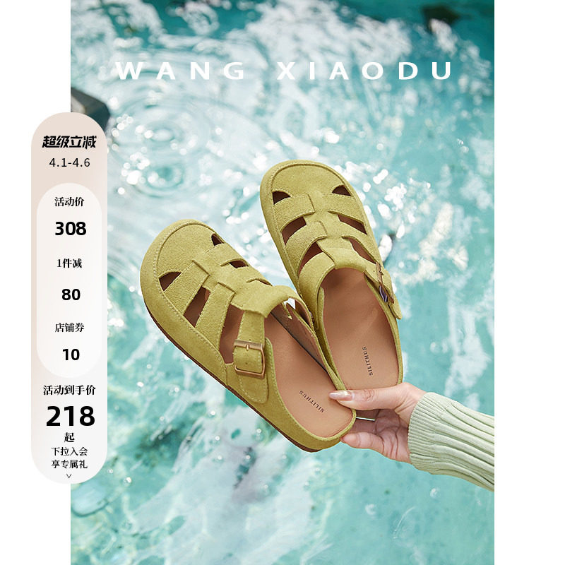 原创【王小毒】罗马晴空●牛反绒镂空罗马凉鞋女夏季平底包头拖鞋