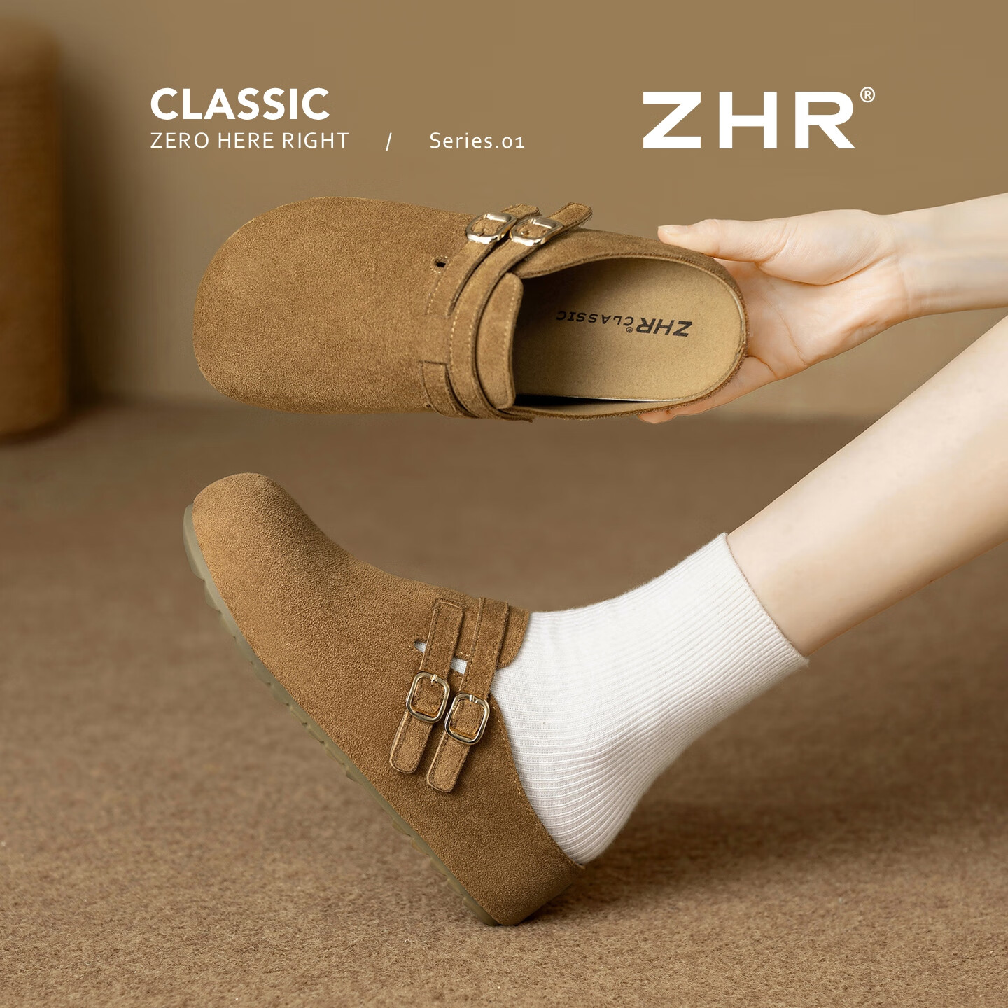 ZHR勃肯拖鞋女外穿舒适柔软半托懒人一脚蹬羊京绒慵懒休闲鞋子女 驼色 37