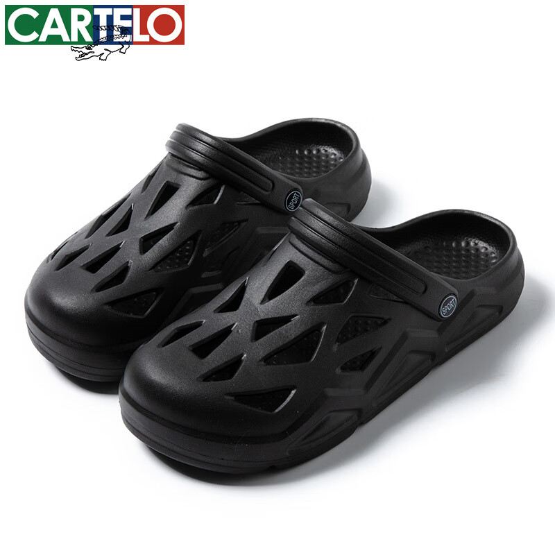 卡帝乐鳄鱼洞洞鞋男踩屎感2024新款防滑厚底防臭沙滩外穿男士运动户外凉拖鞋 黑色 XH200 40 -41