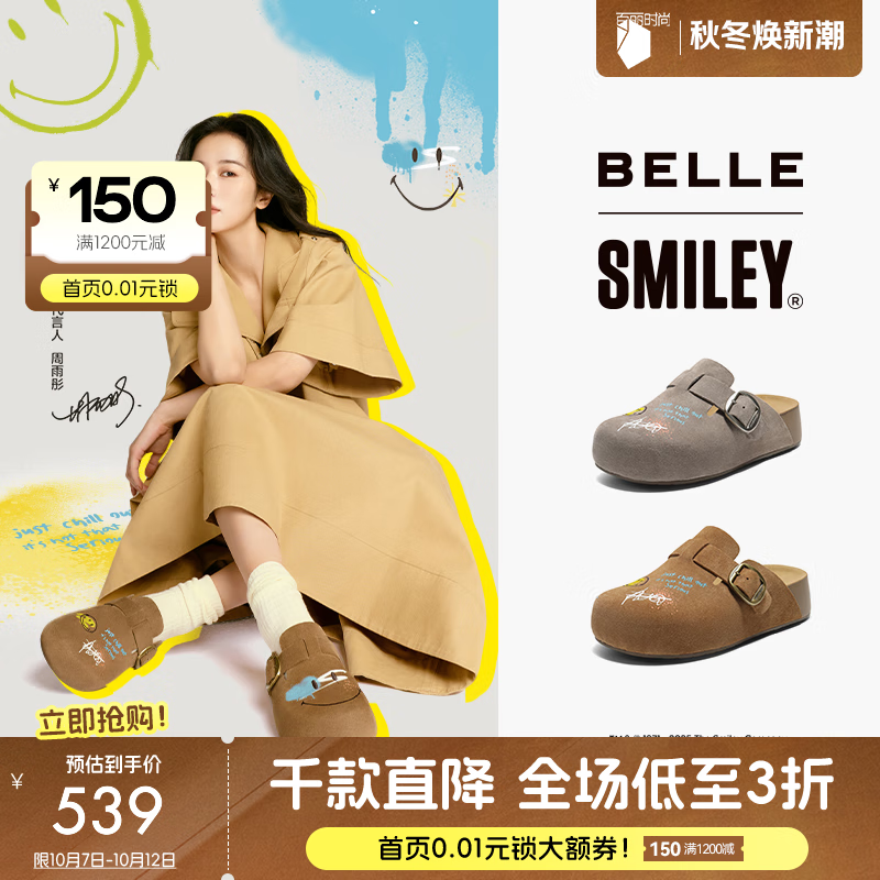 百丽(Belle)张凌赫同款SMILEY联名流浪吐司勃肯女25秋商场款拖鞋D8R2DCH5 棕色 37