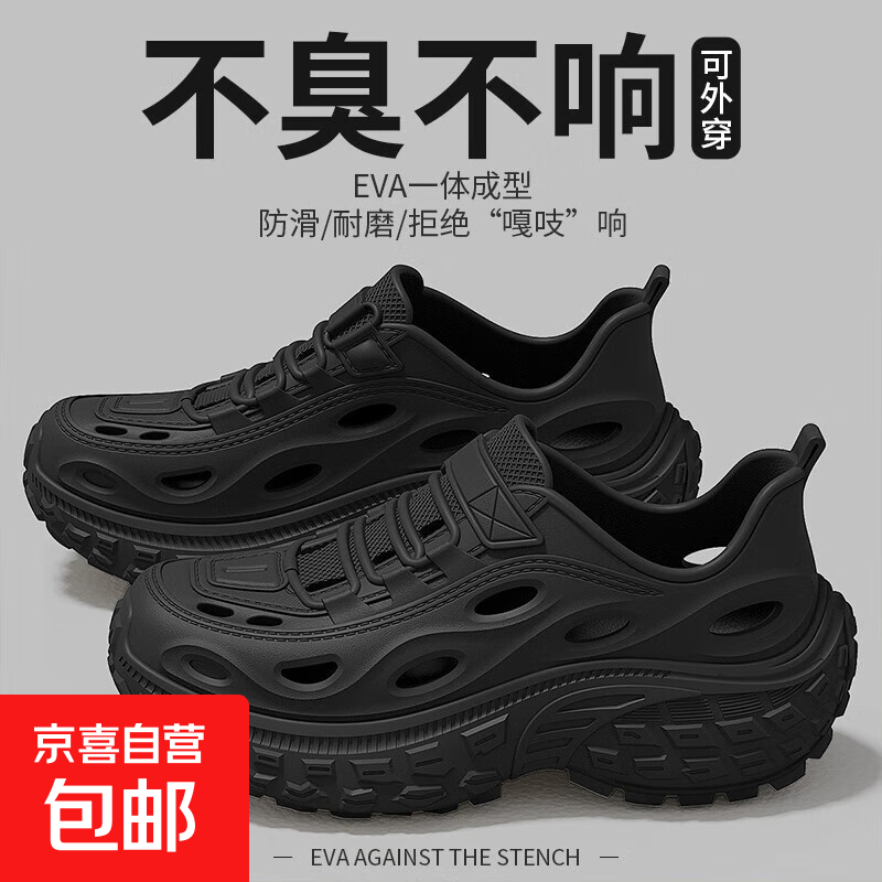 洞洞鞋男款夏季户外穿厚底eva防滑防臭开车透气凉鞋沙滩运动拖鞋 黑色【Eva厚底-防滑透气】 26.5 42-43 适合41-42脚穿