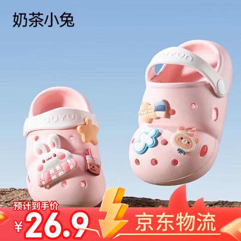 欧孕儿童凉拖鞋夏季室内用洞洞鞋防女孩男童滑女宝宝户外洗澡用包头 奶茶小兔 15 【推荐脚长14.1-15cm】