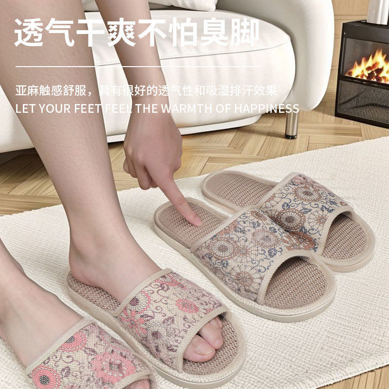 朴西四季透气亚麻拖鞋女士居家防滑吸汗静音情侣百搭亚麻拖鞋男