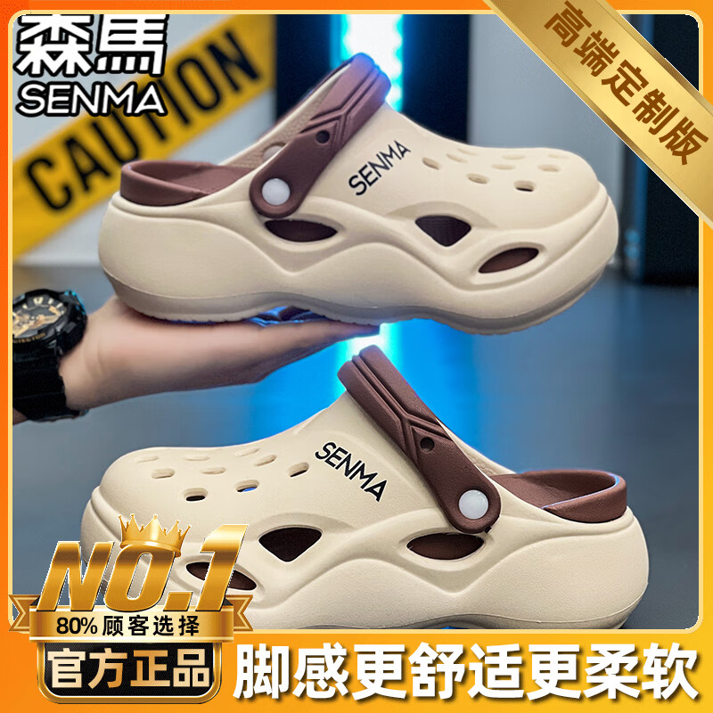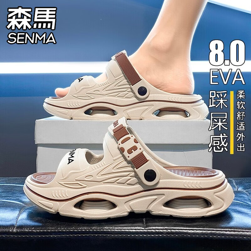 森馬拖鞋男款2026夏季新款外穿厚底踩屎感两用凉鞋男士开车运动沙滩鞋 米粽 43 (42-43同码)