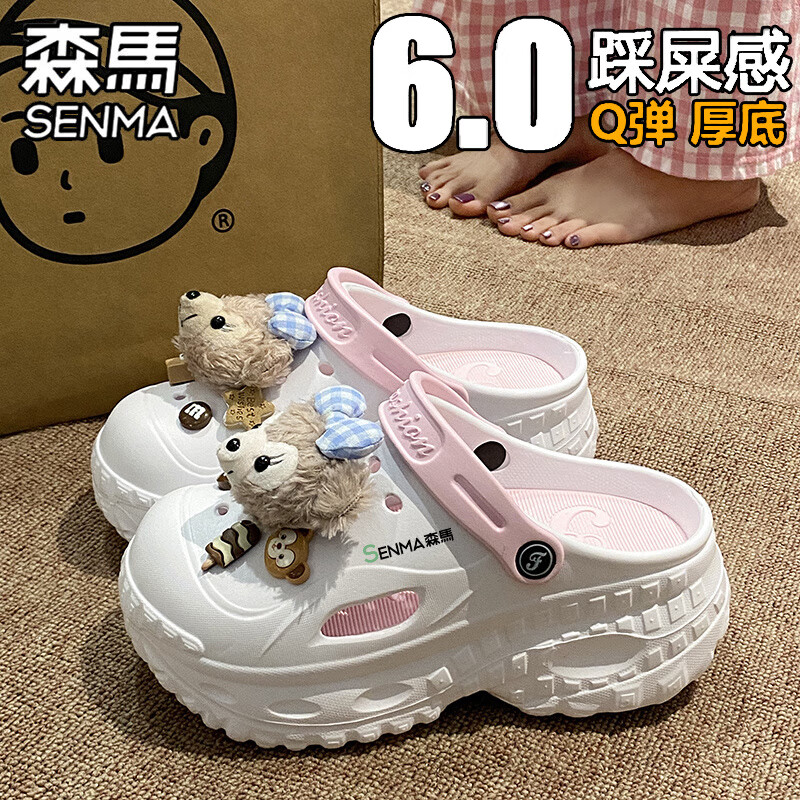 森馬洞洞鞋女夏季2026新款百搭外穿厚底可爱拖鞋休闲防滑海边沙滩凉鞋 白色 38-39