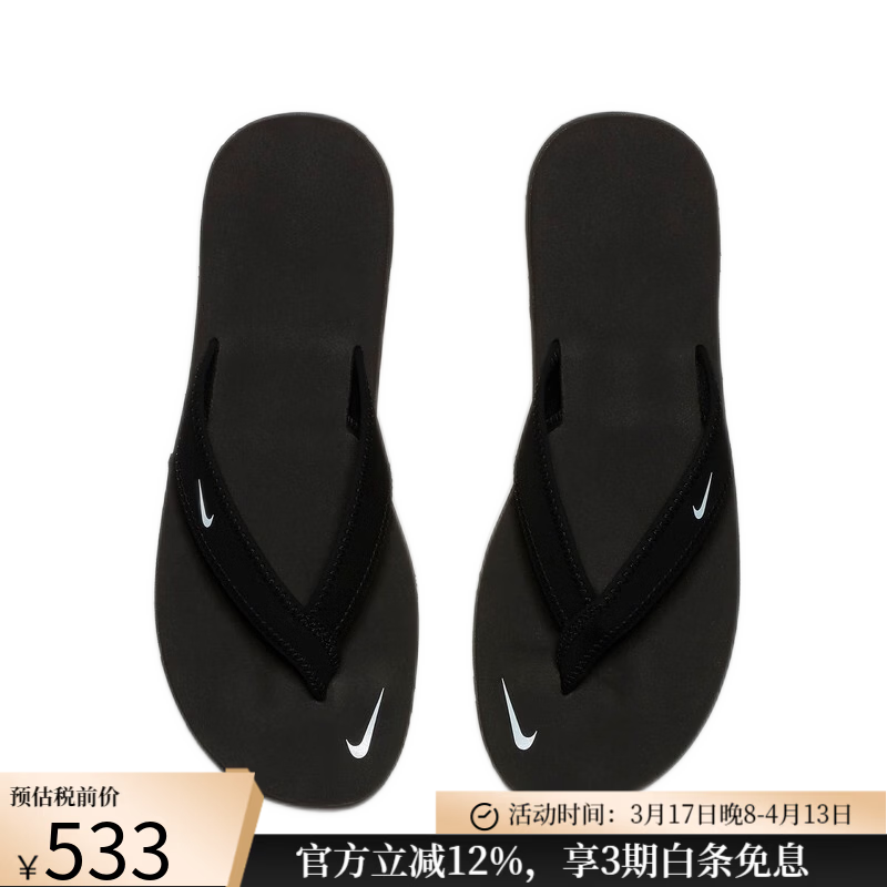 耐克(NIKE)人字拖鞋男女沙滩凉拖鞋情侣夏凉鞋海边度假旅行运动休闲缓震舒适 Black/White黑色囤 42 码=W10/M9