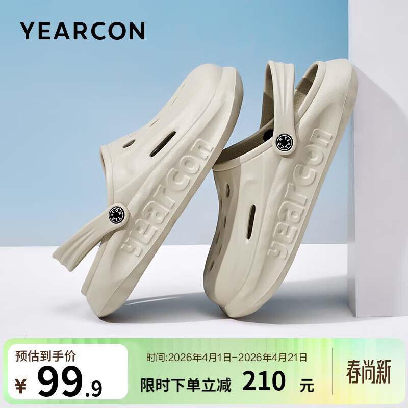 意尔康男鞋 拖鞋男士洞洞鞋夏季踩屎感厚底轻便透气舒适百搭两用 卡其 42
