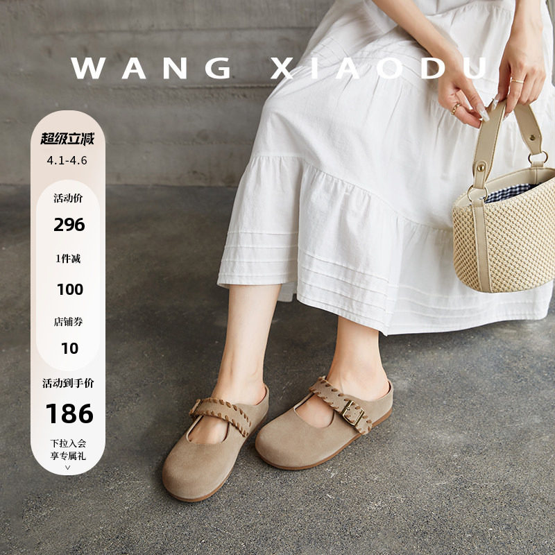 【王小毒】手作云阶○4.5cm内增高~包头拖女牛反绒一字扣勃肯拖鞋