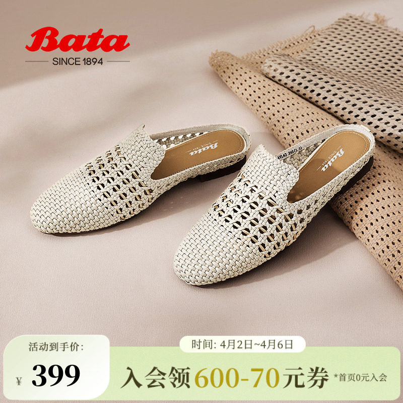 Bata包头拖鞋女商场新款英伦软底编织外穿穆勒鞋AVL43AH5