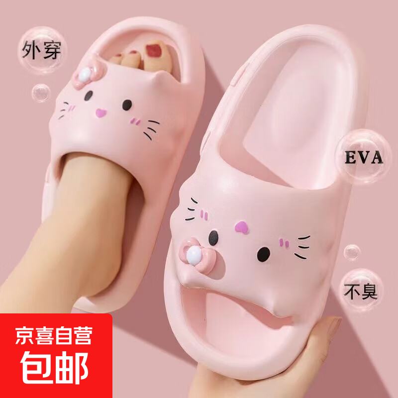 防滑卡通小猫咪小猫可爱室内EVA夏季女士拖鞋居家软底少女女夏 卡通凯蒂猫居家凉拖鞋-粉色 36-37码