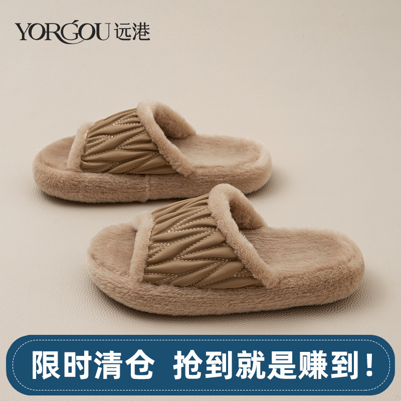 清仓!远港家居棉拖鞋女秋冬季家用保暖厚底室内办公室防滑皮拖男