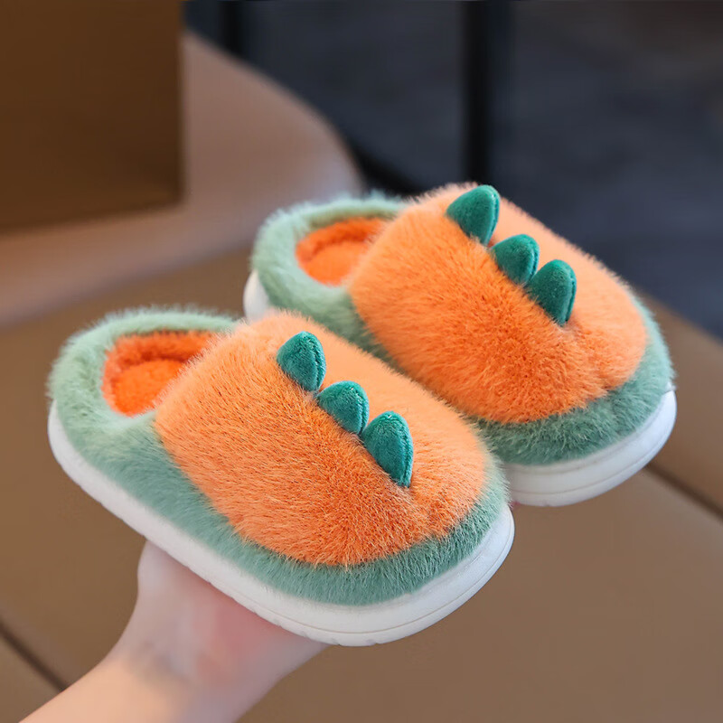 韵优利(yunyouli)儿童棉拖鞋秋冬季中小童卡通可爱男小孩毛绒拖鞋女童家居室内拖鞋 橘色 16 /26-27码内长约16.5厘米
