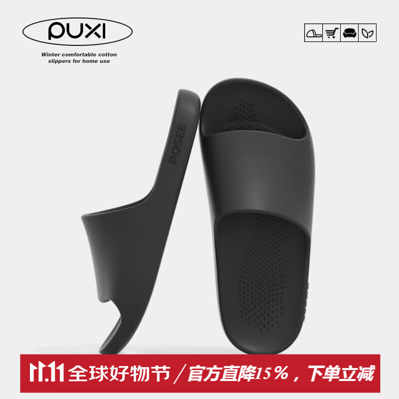 朴西气垫踩屎感凉拖鞋女家居室内情侣静音防臭防滑拖鞋男外穿夏 黑色 42-43