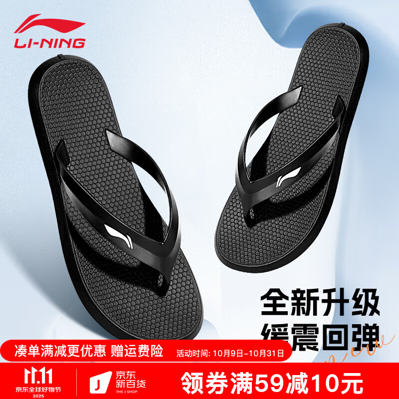 李宁游泳人字拖鞋男女游泳拖鞋秋季软底舒适洗澡人字拖 2.0升级加厚黑色 42