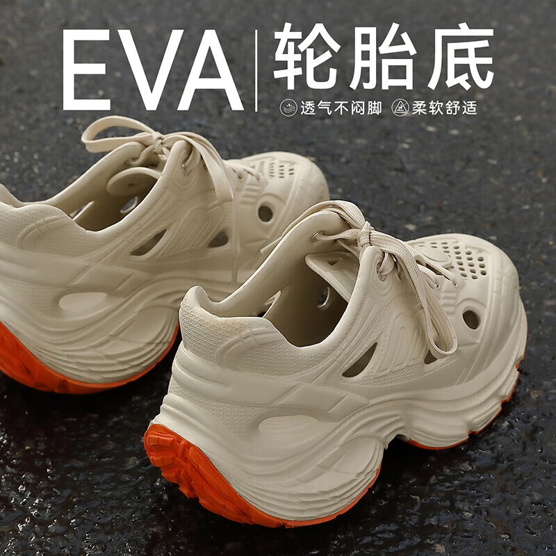 DMPD溯溪洞洞鞋防滑男士2026夏季新款家居外穿运动防臭耐磨凉拖鞋女士 卡其主图款 42-43 适合41-42