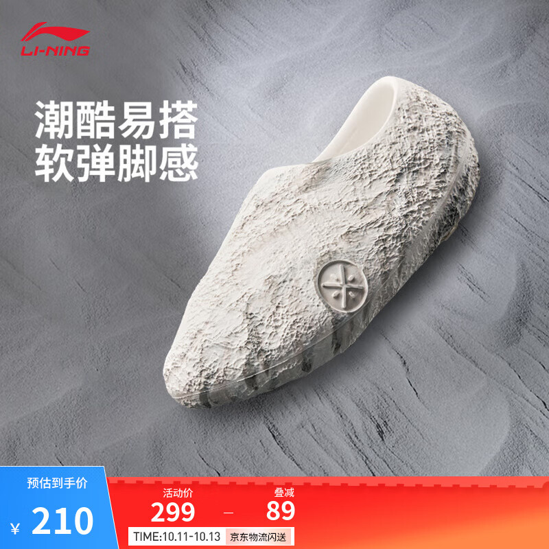 李宁韦德丨篮球场下拖鞋男鞋2025新款潮流时尚百搭运动拖鞋 乳白色/月纱灰-1 41