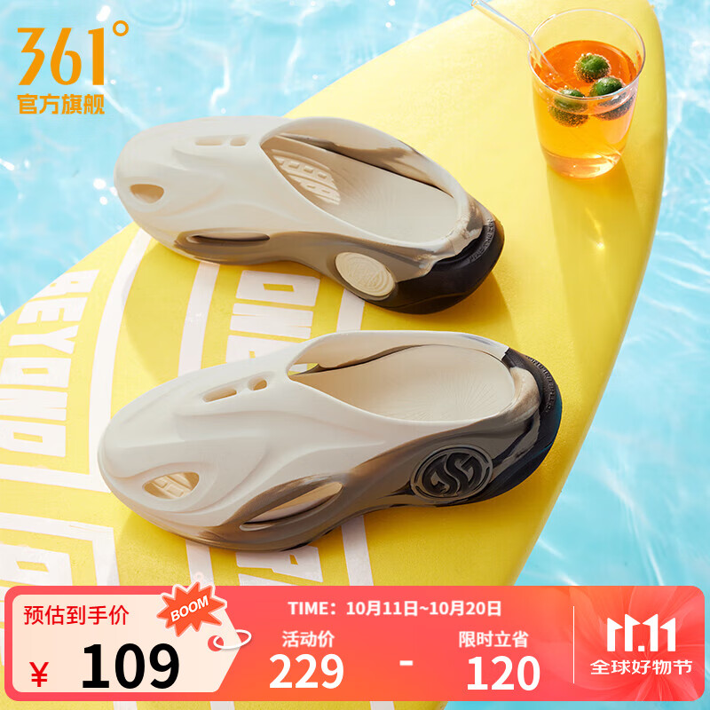 361°游鲸2运动拖鞋户外洞洞鞋凉拖鞋男女情侣同款透气增高防滑沙滩鞋 西米色/页岩灰 42