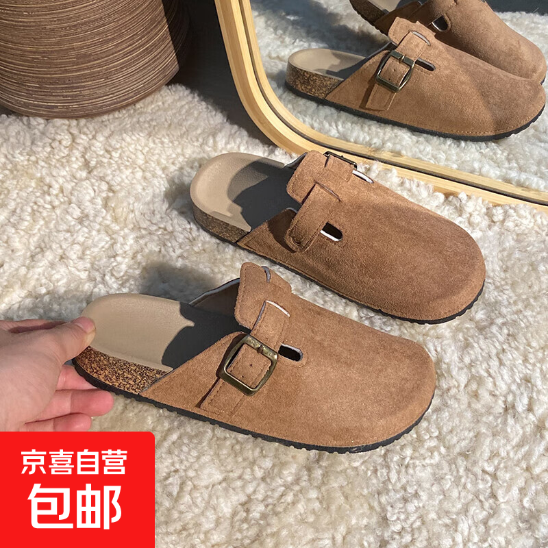 勃肯鞋女2026春秋新款外穿厚底博肯包头半拖鞋懒人一脚蹬女鞋夏季 棕色 36 建议拍大一码