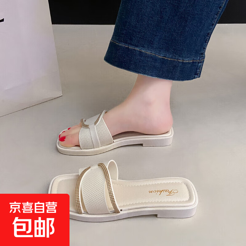 女式凉拖鞋夏季外穿2026新款网红超火居家厚底踩屎感海边沙滩凉鞋 白色 36-37