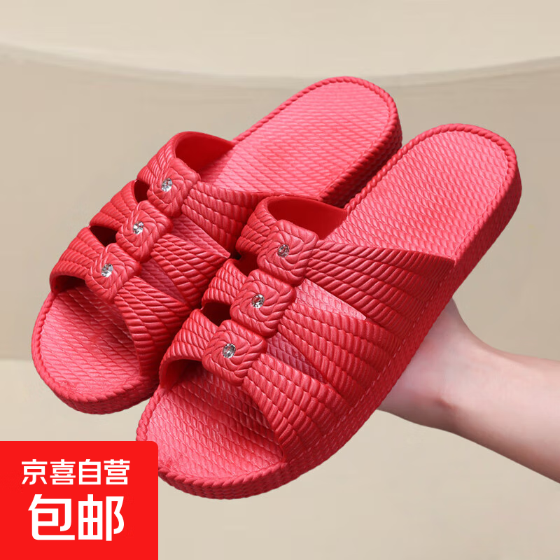 拖鞋女士夏季外穿厚底妈妈新款耐磨日常防滑软底柔软休闲舒适凉拖 红色【偏小一码】 38-39