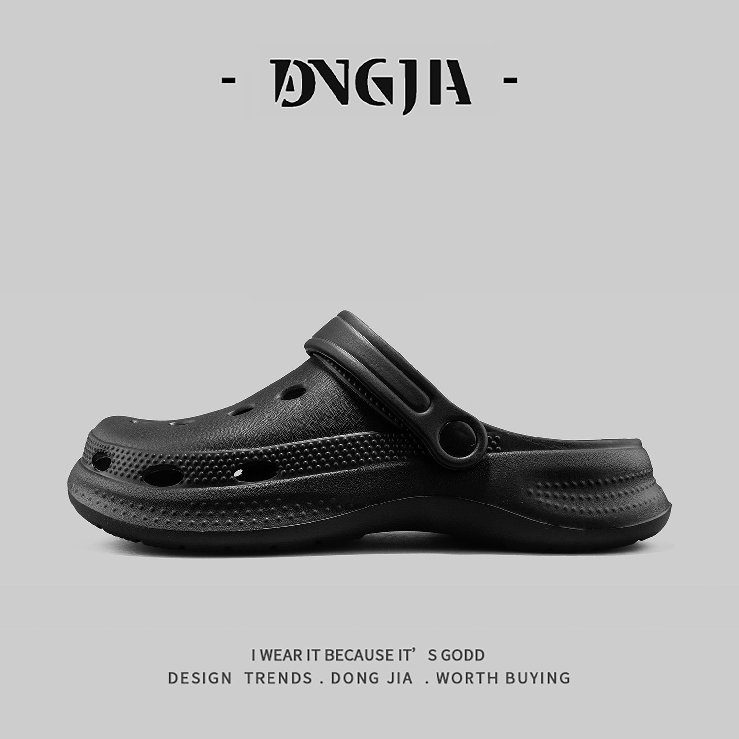 橡胶底洞洞鞋男士夏季外穿居家防滑厚底大码海边沙滩包头拖鞋凉鞋