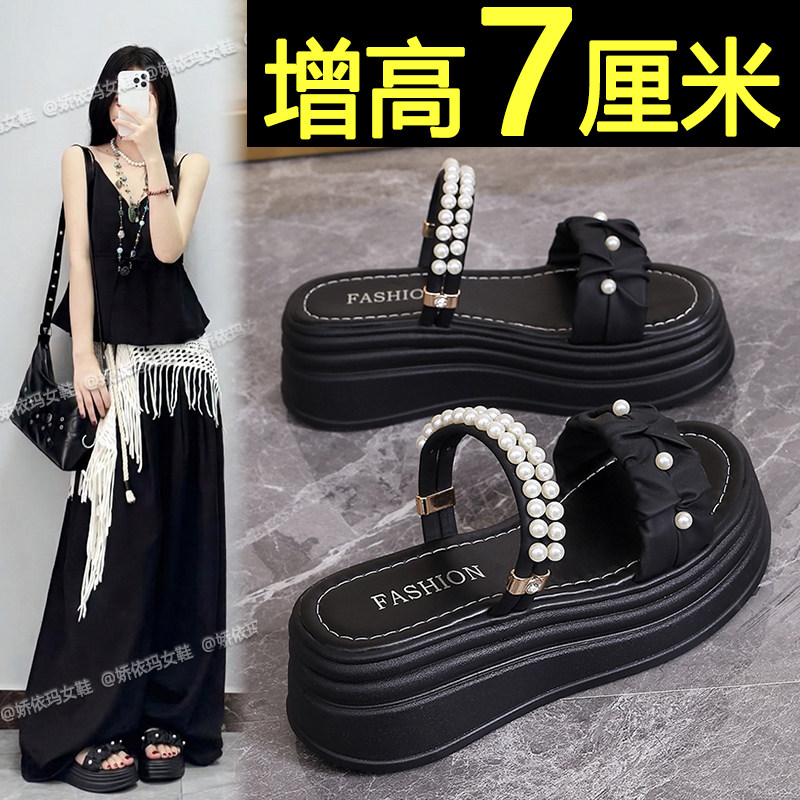 松糕厚底拖鞋女外穿夏2026新款百搭配裙子不累脚增高沙滩凉拖鞋