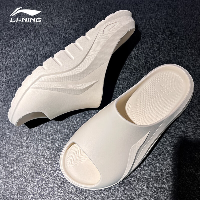 李宁拖鞋男女情侣同款2025夏季新款SOFT CLAP休闲潮流运动凉鞋 米白色 英雄联盟联名 43.5 【适合43.5-44】