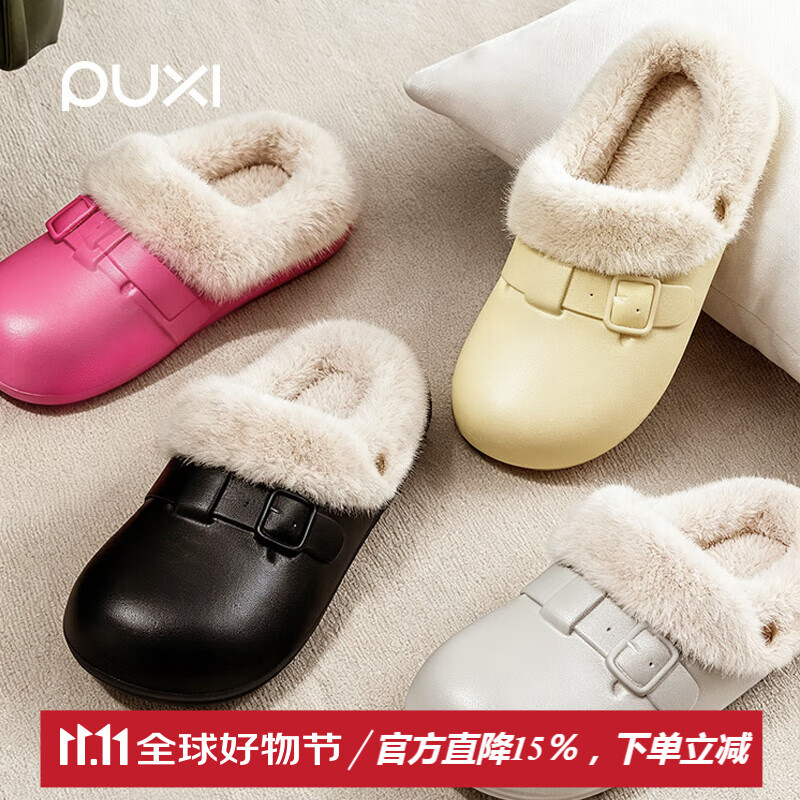 朴西冬季女款居家室内用舒适棉拖鞋防污保暖加绒外穿防水勃肯棉拖鞋女 浅沙色 【防污耐脏】 38-39 【适合37-38】