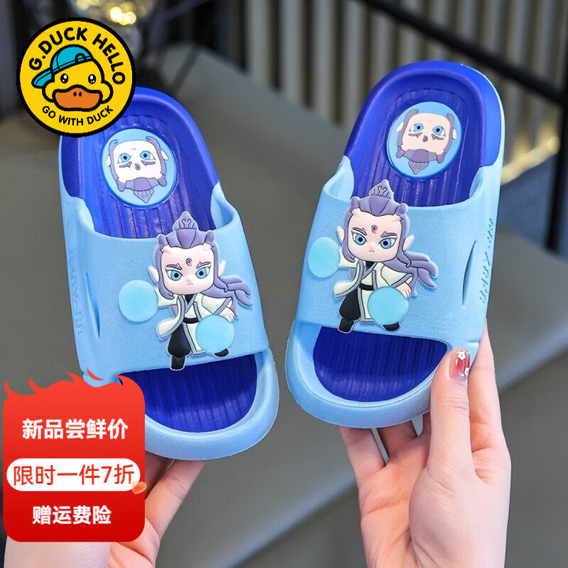 G.DUCKKIDS小黄鸭哪吒儿童拖鞋夏季男女童浴室洗澡卡通防滑小孩宝宝凉拖鞋 敖丙-蓝色(升级版) 32 内长19.5cm 【32-33码】