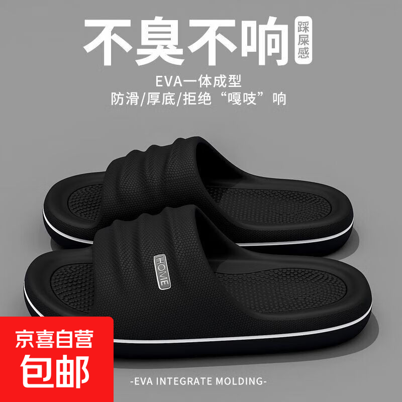 踩屎感男士拖鞋防滑不臭夏季2025新款家居室内浴室老年人凉拖男式 黑色 42-43