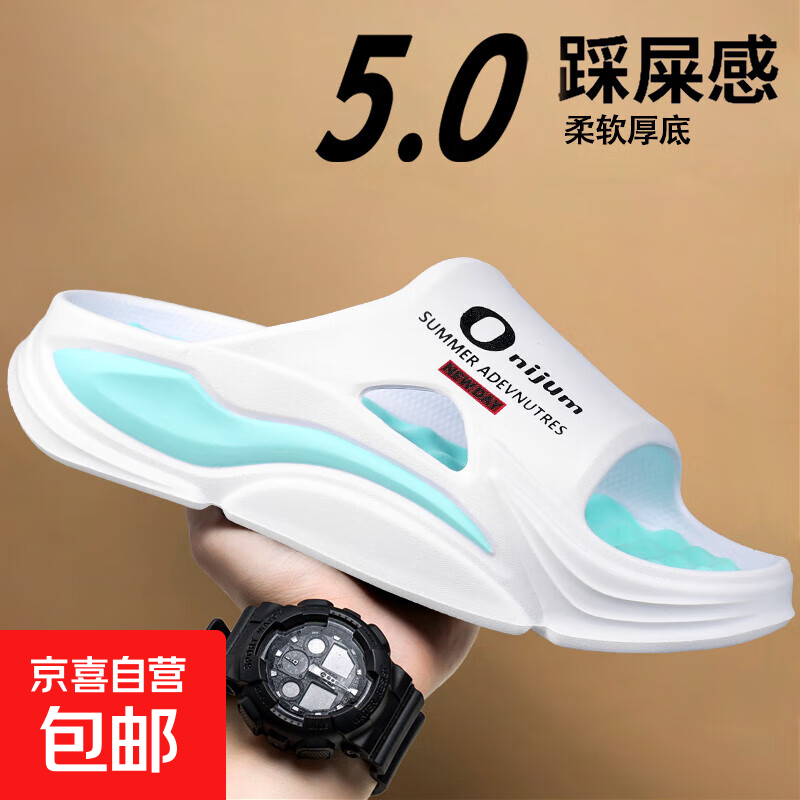 椰子拖鞋男2025新款夏季外穿沙滩运动篮球凉鞋青少年防滑厚底凉拖 白兰 45