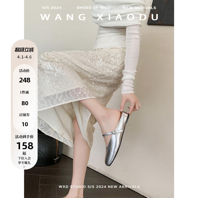 【王小毒】浪漫格调●3cm内增高~包头拖鞋女外穿新银色玛丽珍单鞋