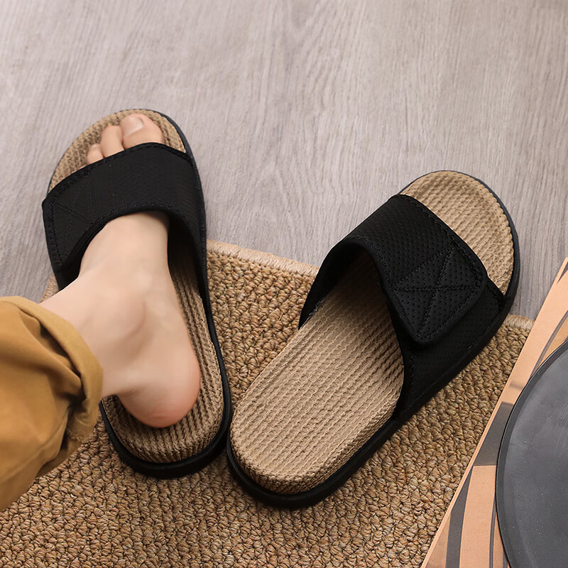 亚麻拖鞋男女四季家用室内厚底防滑卡通居家凉拖鞋春秋棉开口拖鞋
