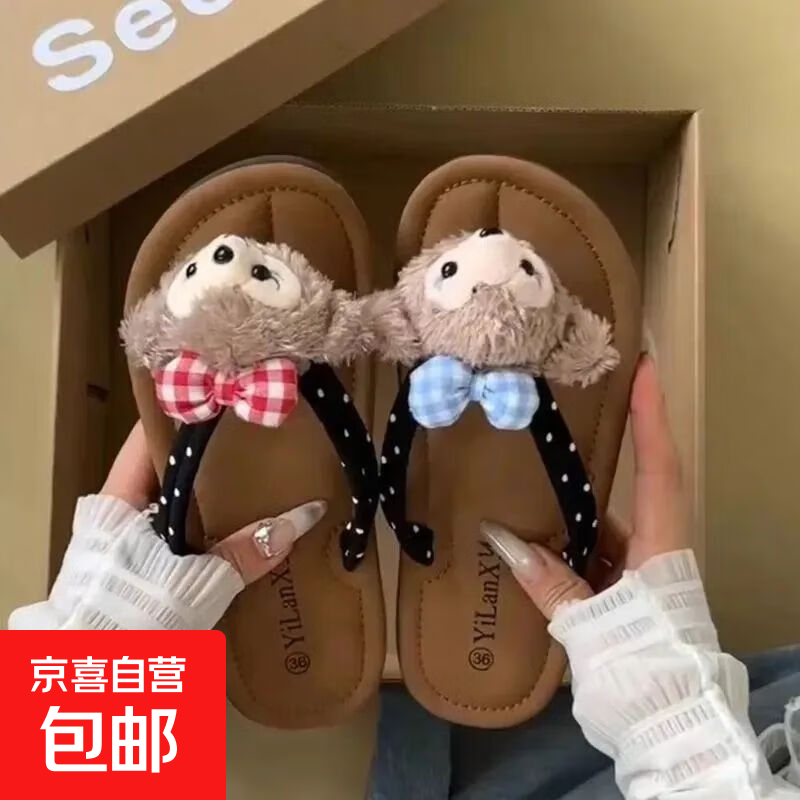卡通星黛露可爱网红拖鞋外穿女2025夏季新款软底平底防滑人字拖 黑色(飞熊) 36-37(偏小一码)