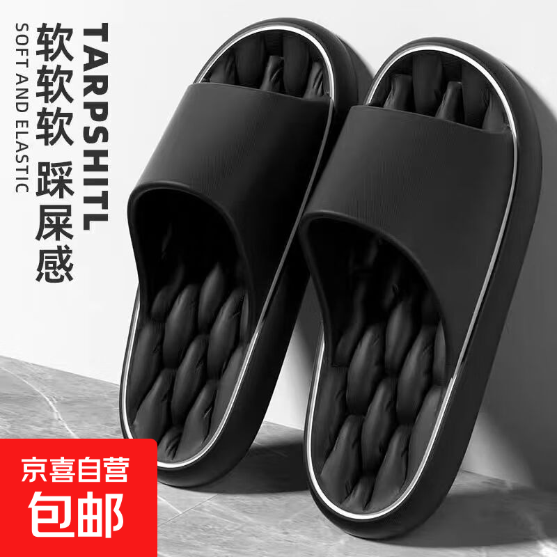 踩屎感情侣拖鞋女夏防臭室内家居静音浴室洗澡防滑居家用凉拖男夏 黑色 38-39 【偏小一码】
