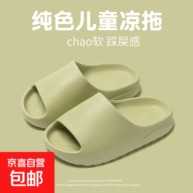 凉拖鞋儿童外穿拖鞋女EVA拖鞋男软底一字拖男沙滩鞋男居家凉拖 绿色 34-35