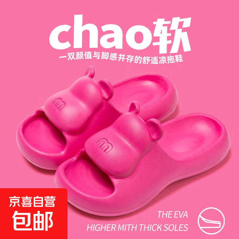 拖鞋女EVA拖鞋男软底一字拖男沙滩鞋男外穿居家凉拖男凉拖鞋男士 玫红 36-37