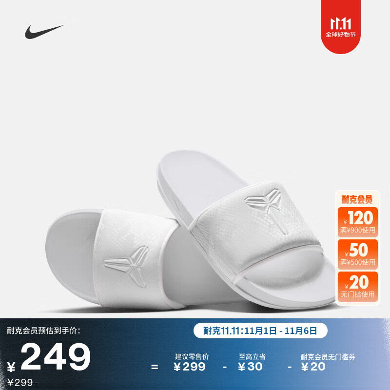 耐克科比男子缓震拖鞋室内支撑抓地NIKE KOBE OFFCOURT IF2870 100白/白 42.5