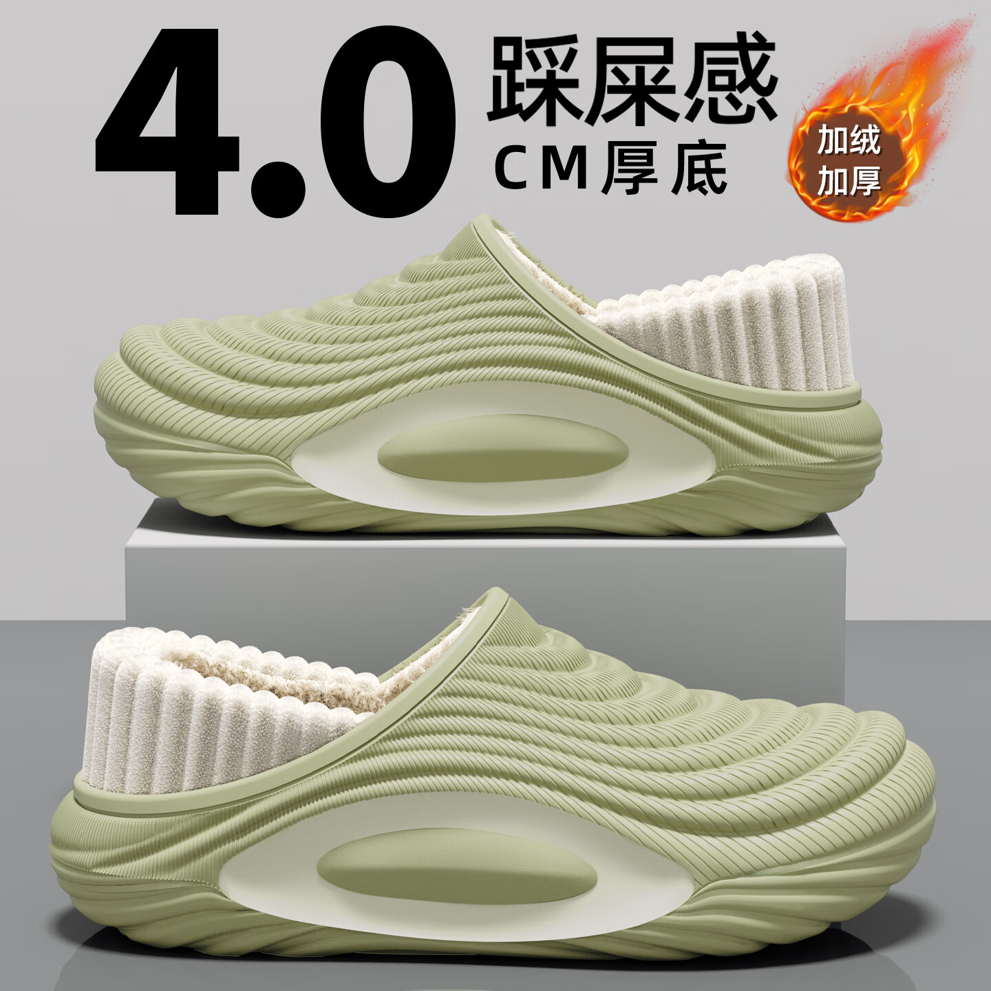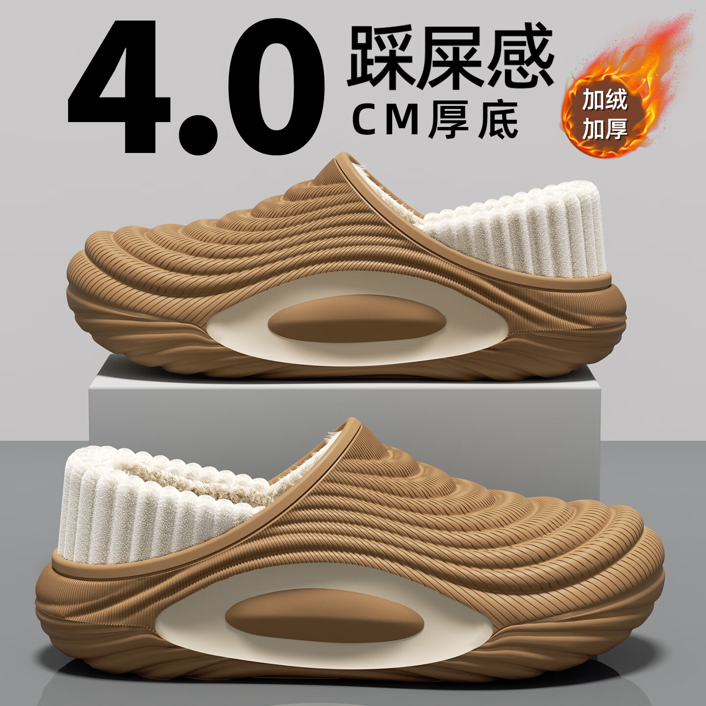 踩屎感包跟棉拖鞋女加绒秋冬季男毛绒情侣居家保暖加绒冬天月子鞋