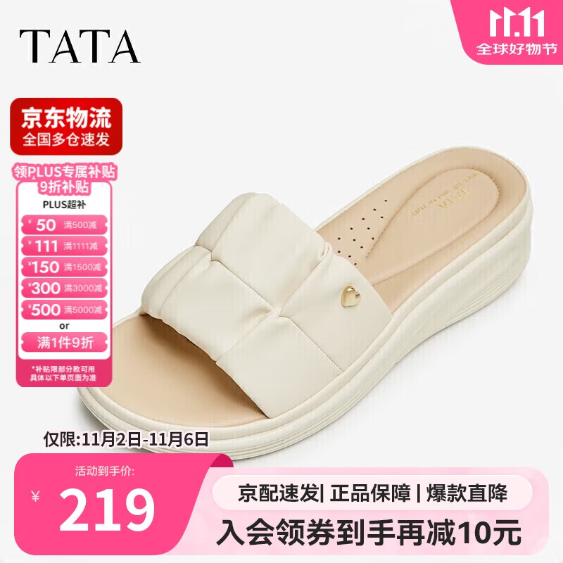 他她夏商场同款简约百搭女一字拖鞋7AP03BT4 米白 36