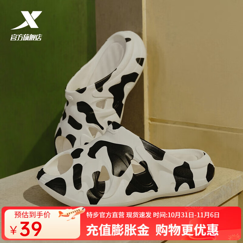 特步(XTEP)萌宠拖鞋女夏季新款厚底增高凉拖鞋休闲女鞋户外沙滩鞋 帆白/黑 37