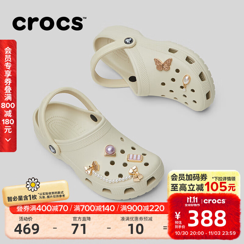 卡骆驰(CROCS)檀健次同款经典洞洞鞋轻便百搭男沙滩鞋包头拖鞋10001 骨白色-2Y2 37 (230mm) 38