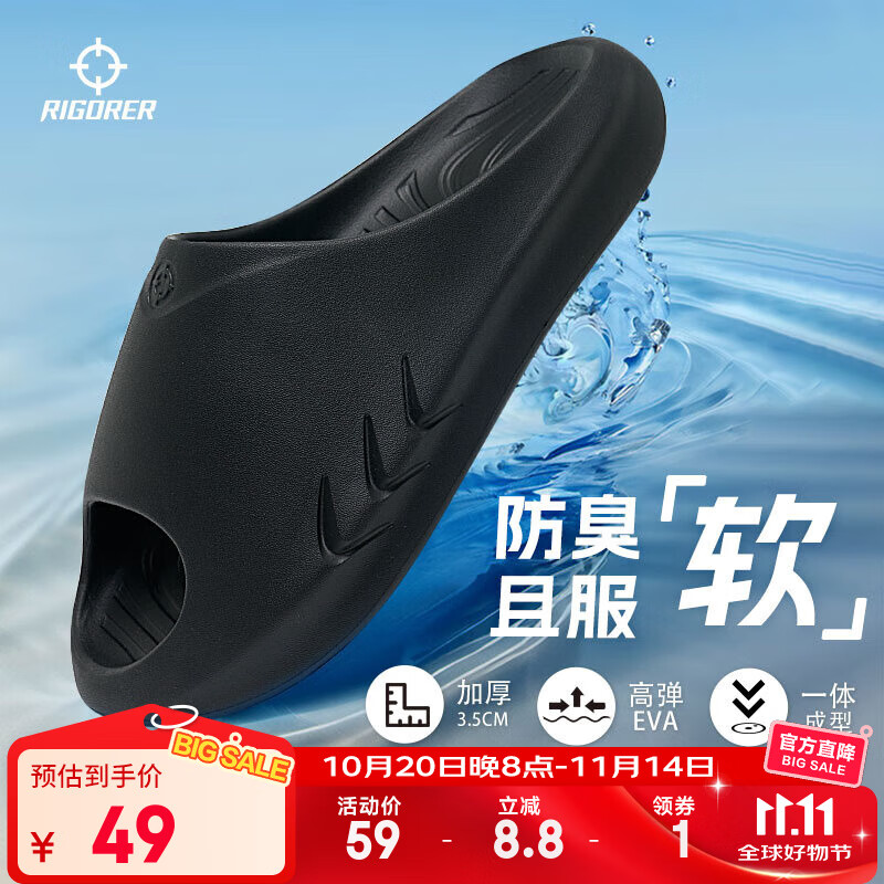 准者运动拖鞋男天际1夏季防水防滑软弹凉鞋室内外穿厚底涉水一字拖鞋 准者黑 【抑菌防臭软弹 小鲨鱼】 43