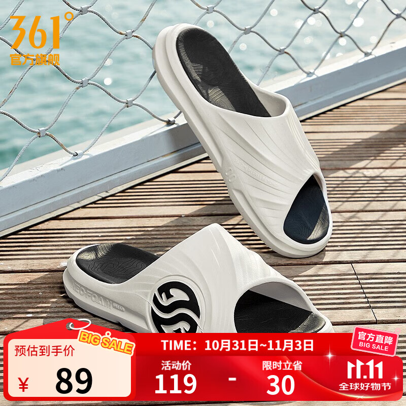 361°拖鞋男女AG运动凉鞋软弹耐磨居家防滑运动拖鞋涉水情侣拖鞋沙滩鞋 羽毛白/乌黑色【男】 43