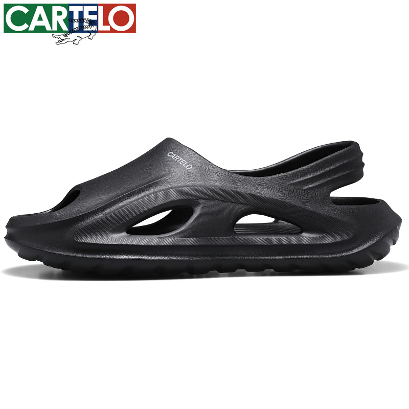 卡帝乐鳄鱼洞洞鞋男踩屎感2024新款防滑厚底防臭沙滩外穿男士运动户外凉拖鞋 黑色 MX6620 40 -41 [运动鞋码]